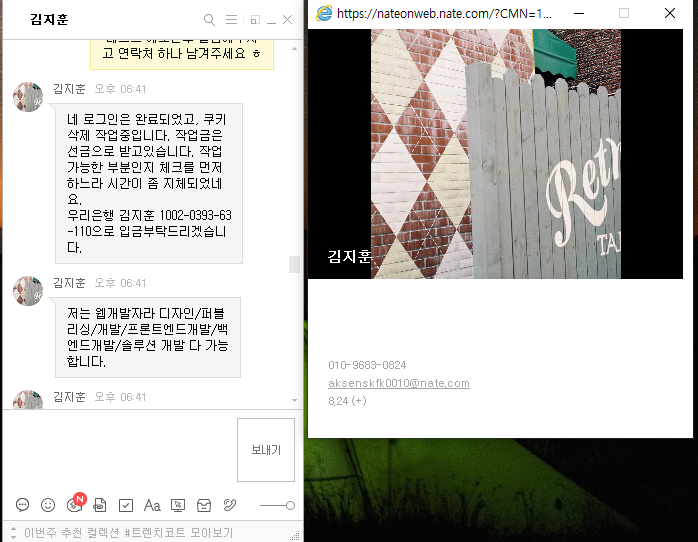 해당 네이트온 아이디 프로필에 전번 나와있더라고요